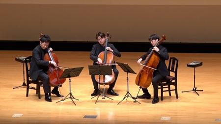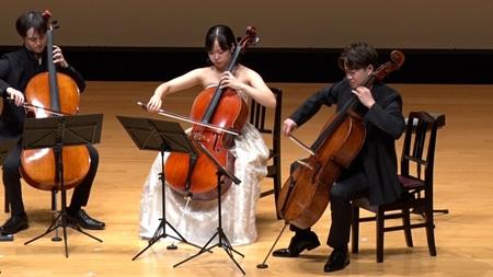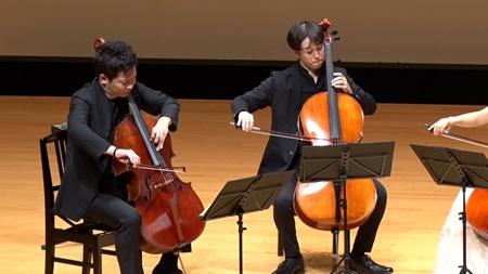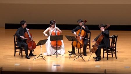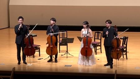 共演者にはアンサンブル天下統一が講師を務めるアンサンブルに特化したマスタークラス「アンサンブル・アカデミー」受講を経て現在ドイツにて研鑽を積む若手チェリストの3名、波多野太郎さん・田上史奈さん・泉優志さんを迎えて、チェロ二重奏・三重奏・四重奏のバラエティに富んだ名作の数々をお届けしました。チェロだけのアンサンブルを堪能できるコンサートは珍しく、チェロの幅広い音域から奏でられるメロディーや豊かな響きを存分にお楽しみいただくことができました。
