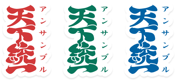 アンサンブル天下統一が愛してやまない岡崎の銘酒「二兎」(丸石醸造株式会社)のラベルデザインを手掛ける小林拓馬氏によるデザイン。筆と墨で書いた文字を元に、クラシック音楽のグループ名としては珍しい漢字表記にふさわしい、格式ある和風ロゴを目指しました。徳川家の家紋をモチーフにした三葉の葵の重なりは、メンバー3人の卓越した音楽性とアンサンブル力を表現しています。